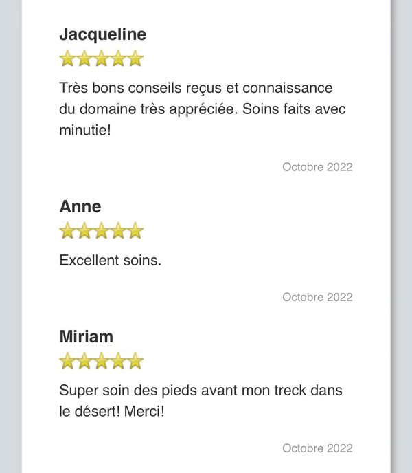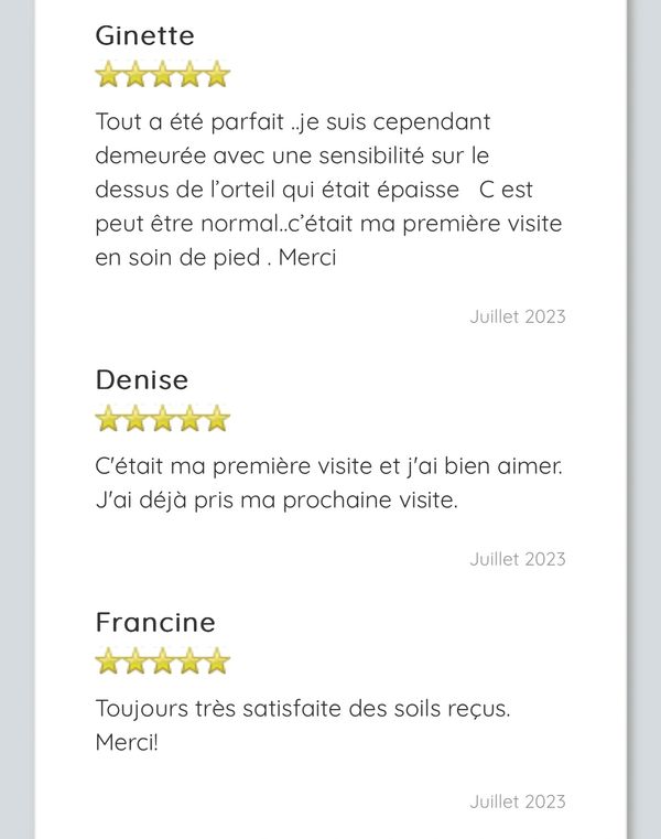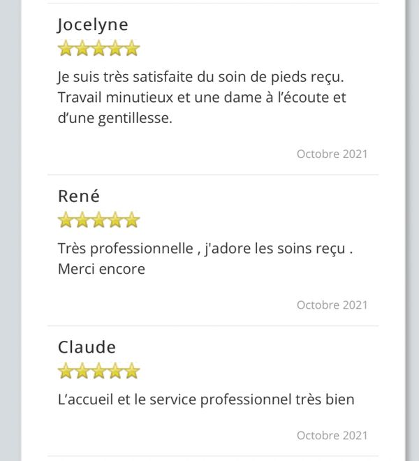 Les soins de santé des pieds fait par une infirmière aux. ne sont pas taxables Les prix peuvent subir une augmentation visiter nos réseaux sociaux pour infos augmentation prévue pour le 1 aout 2022